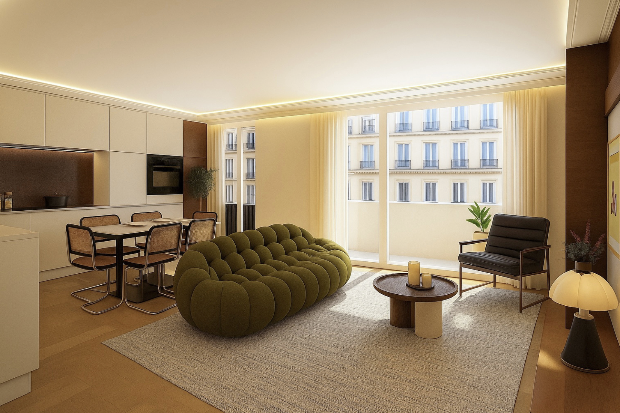 Le mobilier et les teintes ont été soigneusement sélectionnés pour valoriser chaque détail architectural, tout en restant neutres et harmonieux, afin de séduire un large public.